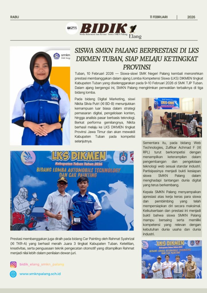 Siswa SMKN Palang Berprestasi di LKS DIKMEN Tuban, Siap Melaju Ketingkat Provinsi Februari 11, 2026Februari 25, 2026