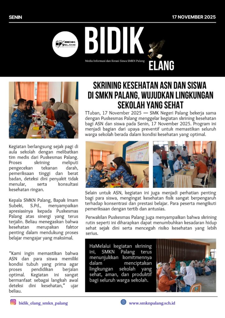 SKRINING KESEHATAN ASN DAN SISWA DI SMKN PALANG, WUJUDKAN LINGKUNGAN SEKOLAH YANG SEHAT November 17, 2025November 19, 2025